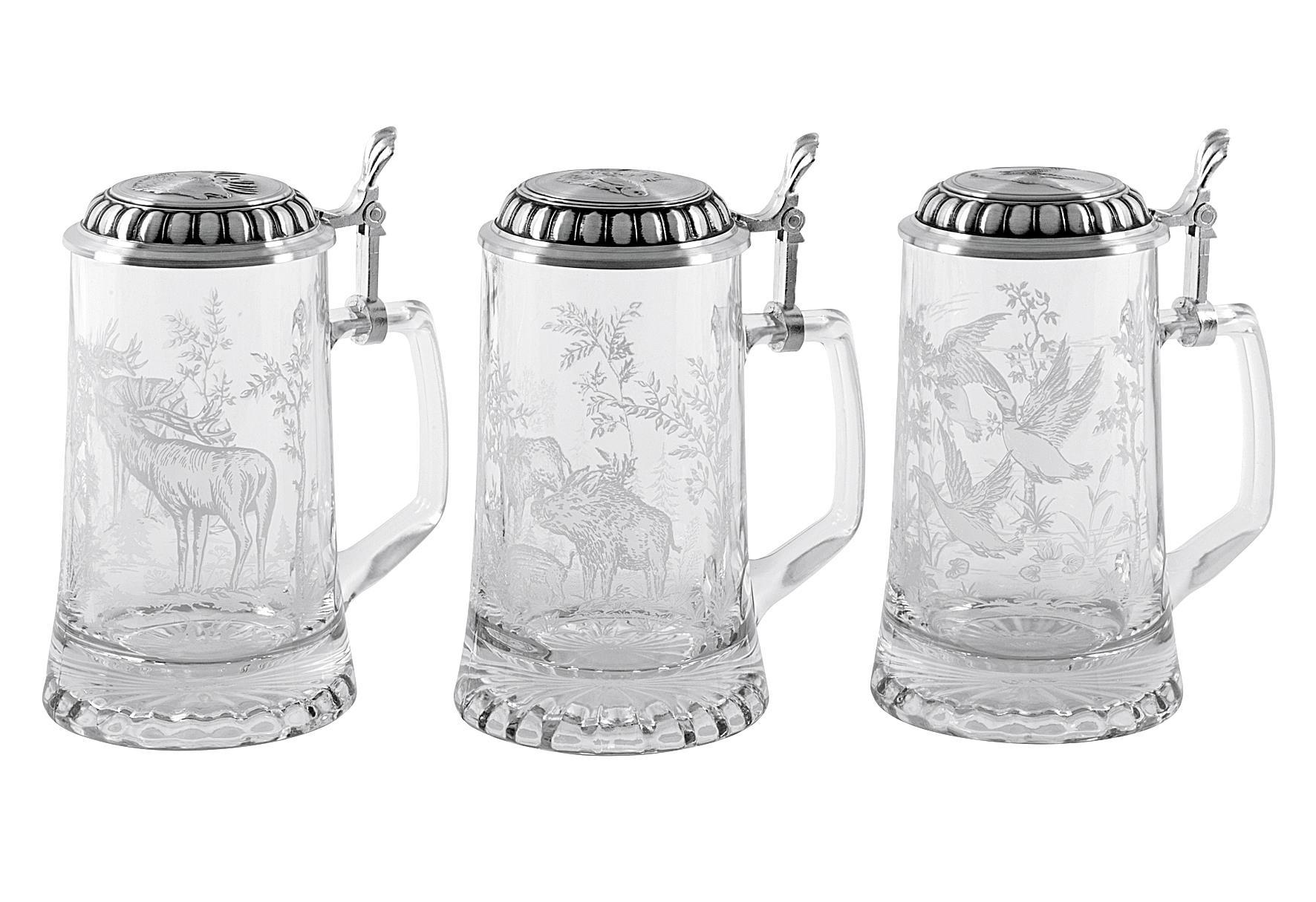 DOMEX Bierseidel Wild mit Zinndeckel 0,5 l 3fach sortiertrnLieferumfang: 6 VPE