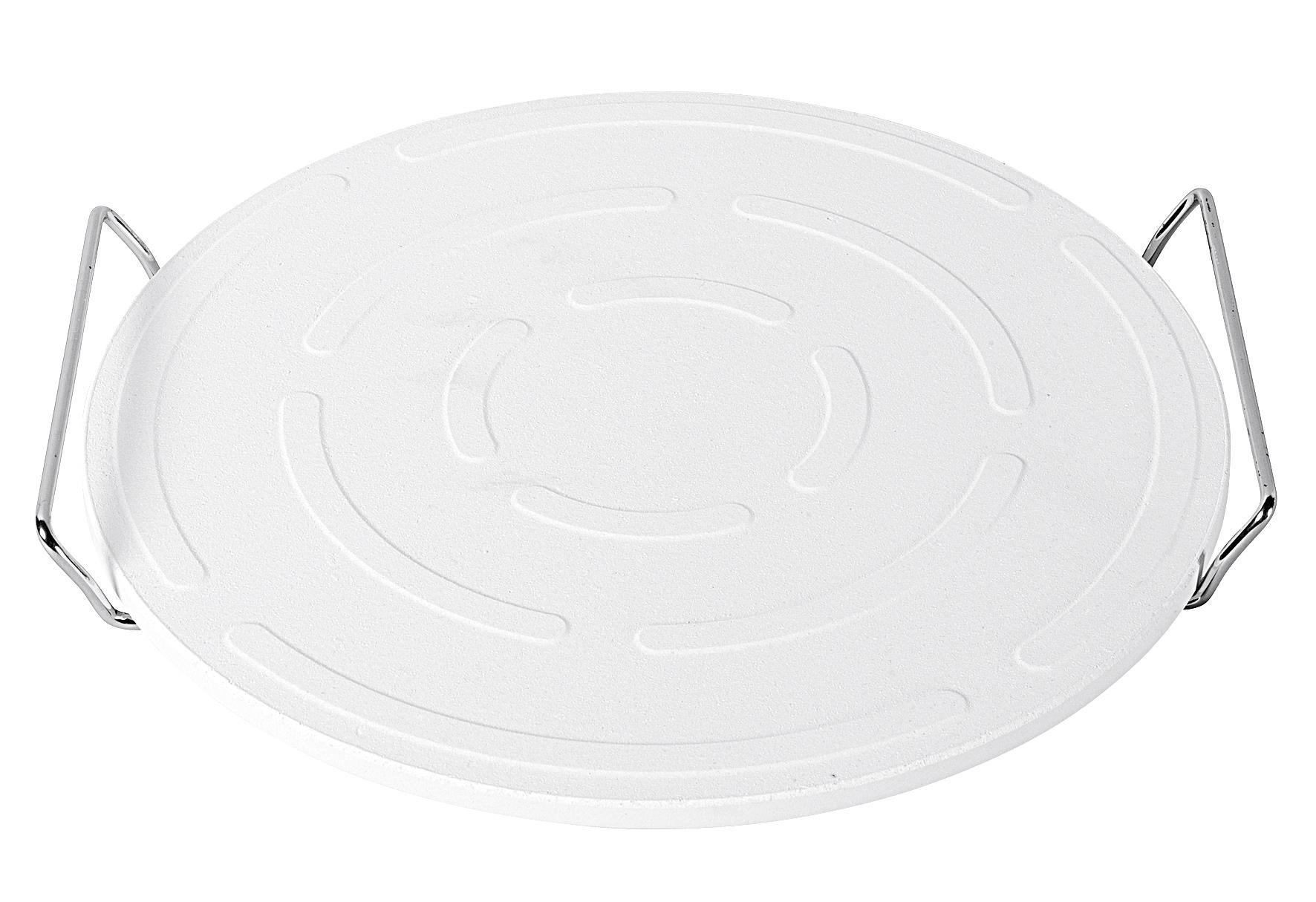 GUSTA Pizzastein mit Halter geeignet auch für BBQ Ø33cm weiß/silber