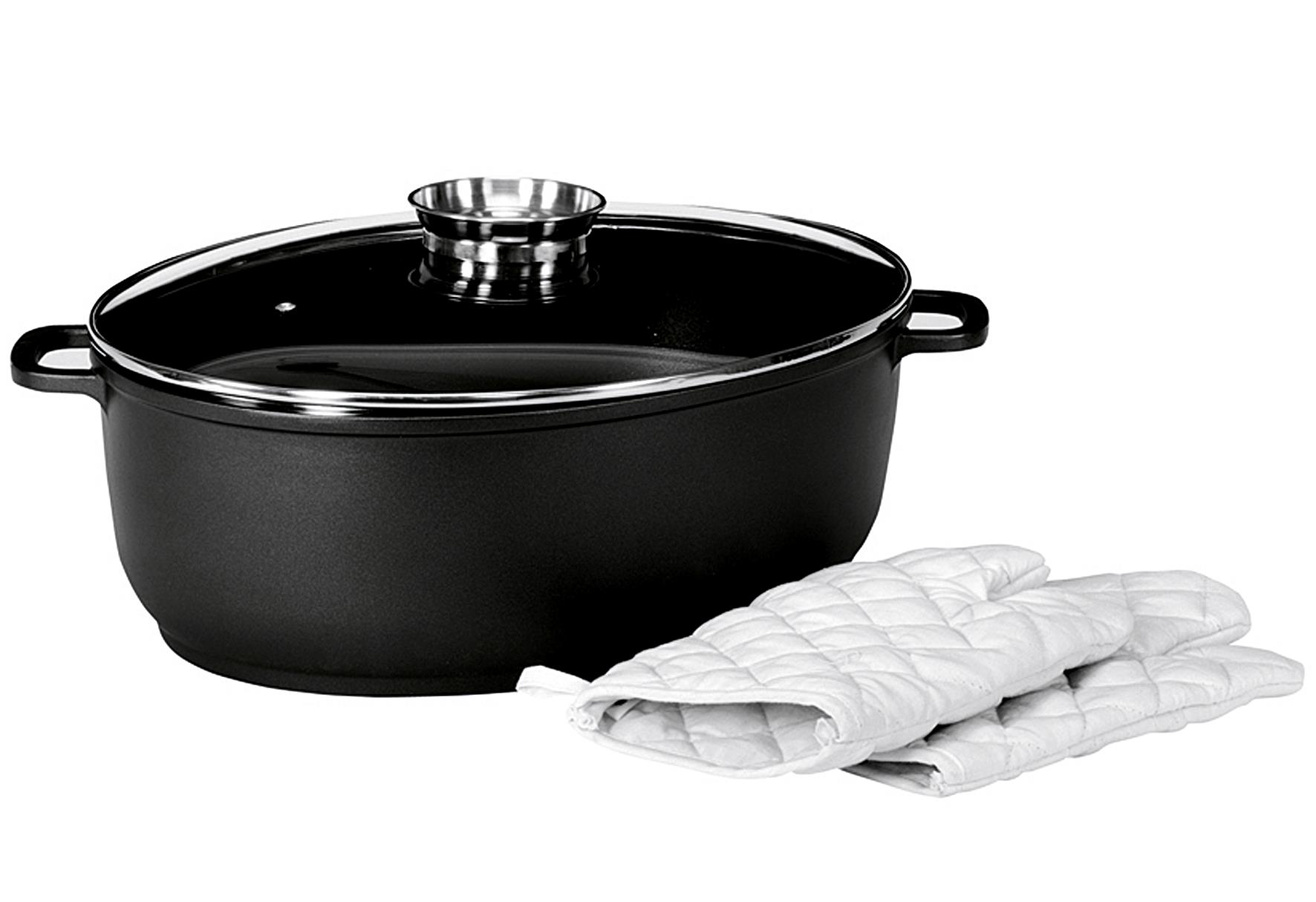 KARL KRÜGER Gänsebräter Leipzig mit Glasdeckel u. Aromaknopf 11l inkl. 1 Paar Handschuhe