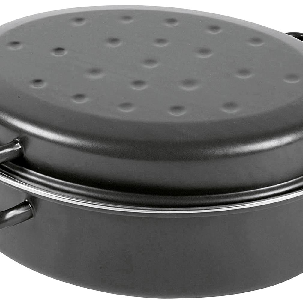KARL KRÜGER Gänsebräter oval 10,5 l Ø42cm emailliert schwarz matt