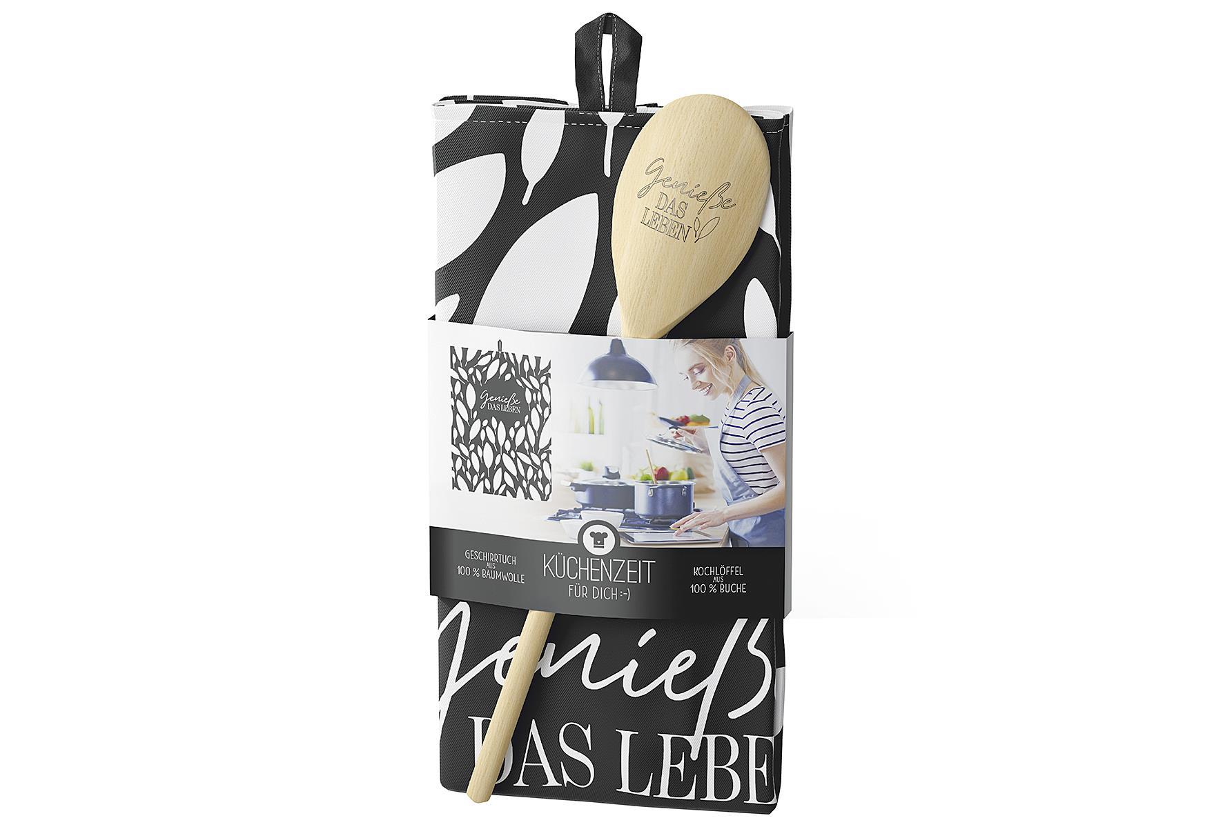 LA VIDA Kochlöffel mit Geschirrtuch Küchenzeit Genieße das LebenrnLieferumfang: 4 VPE