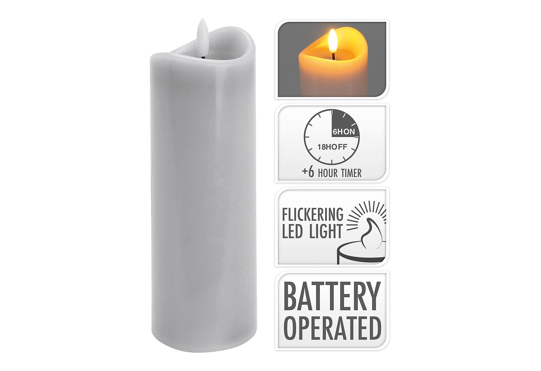 LED Kerze Wachs mit Gelee-Effekt grau mit Timer 20×7 cmrnLieferumfang: 12 VPE