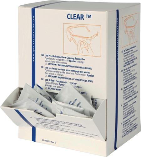 Spender mit 100 alkohol- und silikonfreien Tüchern · für die Reinigung der Sichtscheiben aller Augenschutzprodukte