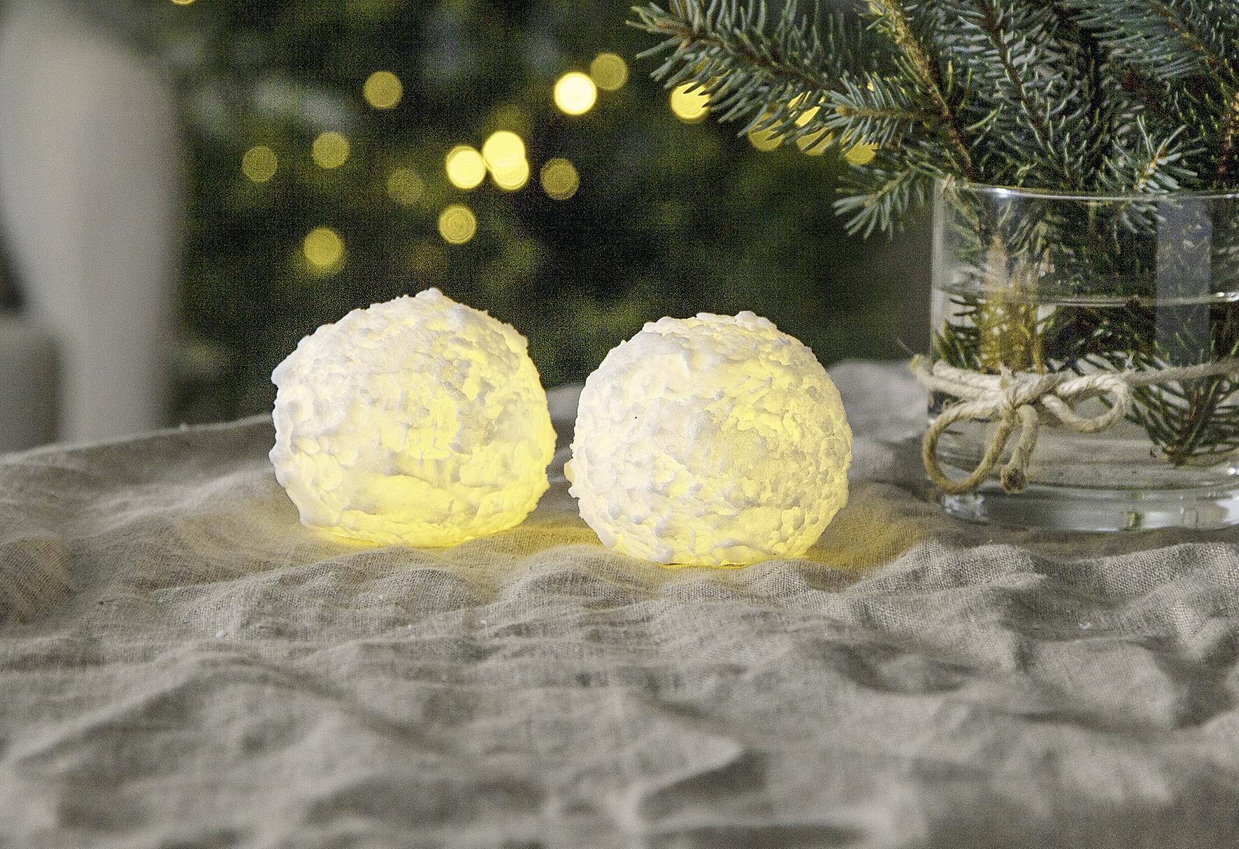 STAR TRADING Kugelkerze Schneeball LED Echtwachs Timer Ø8cm 2er Satz