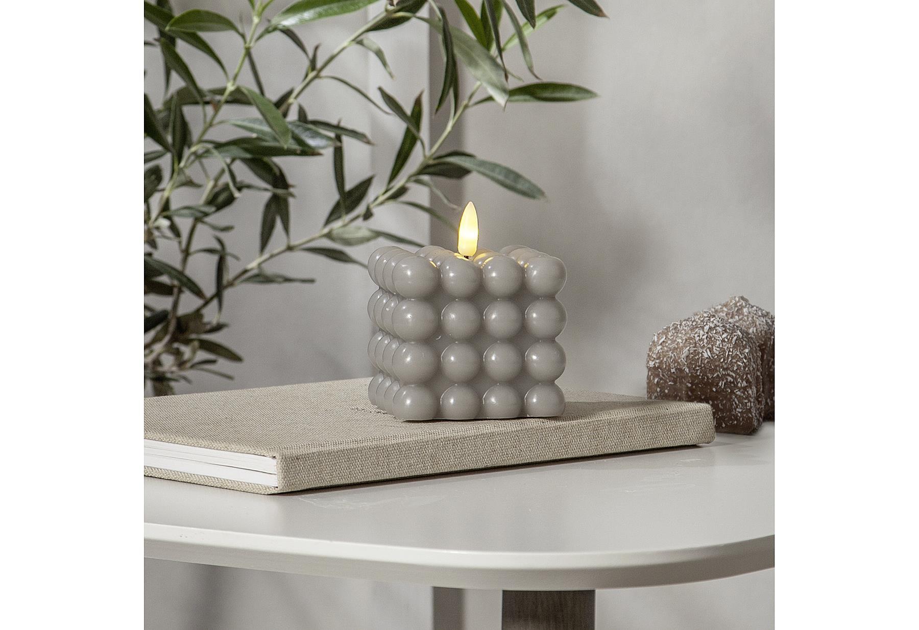 STAR TRADING LED-Wachskerze Flamme Dot 9,5×7,5cm grau