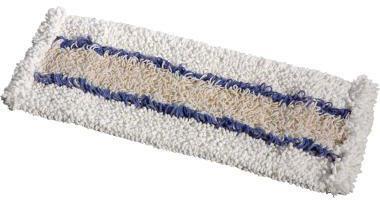 Wischmopp ist getuftet und hat Fransen an den Stirnseiten. Mit Schlauchprofil. Bitte sortenrein ohne Weichspüler waschen.